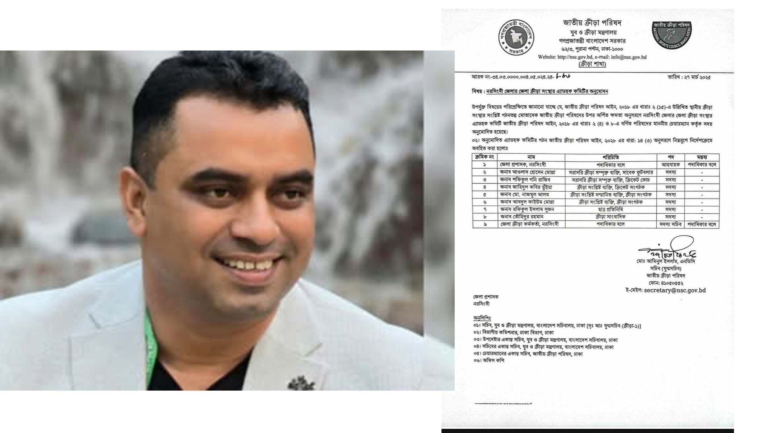নরসিংদীর ক্রীড়াঙ্গনে নবযাত্রা: জেলা ক্রীড়া সংস্থার এডহক কমিটিতে জাহিদুল কবির ভূঁইয়া - BENGOL TV
